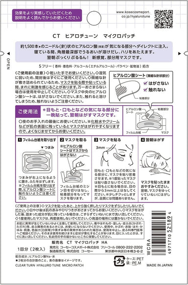 Kose Cosmeport Clear Turn Hyaluro Tune การดูแลผิวที่ล้ำสมัยด้วยการใช่แผ่นไมโครนีเดิลกรดไฮยาลูโรนิกที่ให้การดูแลผิวได้ดี ทรงพลัง ใช้ในบริเวณที่ผิวแห...